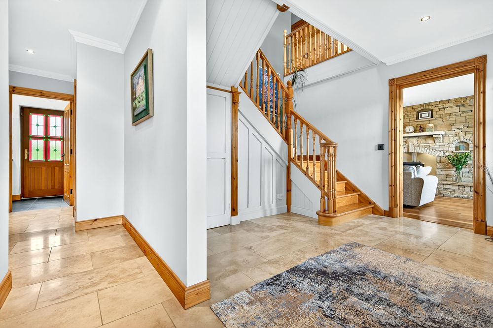 Nestled within an exclusive development of just eight homes, No. 7 The Rock is a truly charming and distinctive residence that perfectly blends privacy, comfort, and convenience. Tucked away in a peaceful cul-de-sac and surrounded by beautifully manicured gardens and mature shrubbery, this home enjoys the tranquillity of country-style living while being only a short stroll from all of Tubbercurry’s amenities, including schools, shops, cafés, restaurants, and bars. Extending over two well-proportioned floors, this impressive property offers generous living accommodation and would make an exceptional family home. The private rear garden provides a secluded outdoor retreat, complemented by a large detached garage offering excellent storage or workspace potential. On the ground floor, the welcoming sitting/dining room is rich in character, featuring hardwood flooring and a striking natural stone fireplace with an oil-burning stove, creating a warm and inviting focal point. The kitchen is both stylish and functional, complete with a granite worktop and classic Belfast sink. Additional accommodation includes a living room, utility room, office, and a convenient wet room. Upstairs, the home boasts four spacious bedrooms. Three benefit from built-in wardrobes, while the master bedroom is further enhanced by a walk-in wardrobe and a fully tiled en-suite bathroom. A newly refurbished family bathroom completes the first floor, finished to a high standard with new tiling and modern sanitary ware. Properties of this calibre and setting rarely come to market. Early viewing is highly recommended—contact us today on 071 9140404 to arrange your appointment.