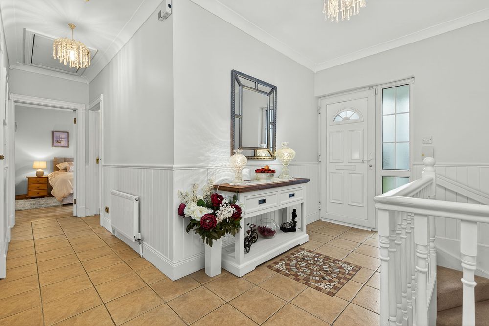 This entire area is finished with a tiled floor, complete with ornate centerpiece and this opens to all living accommodation and additional bedrooms.