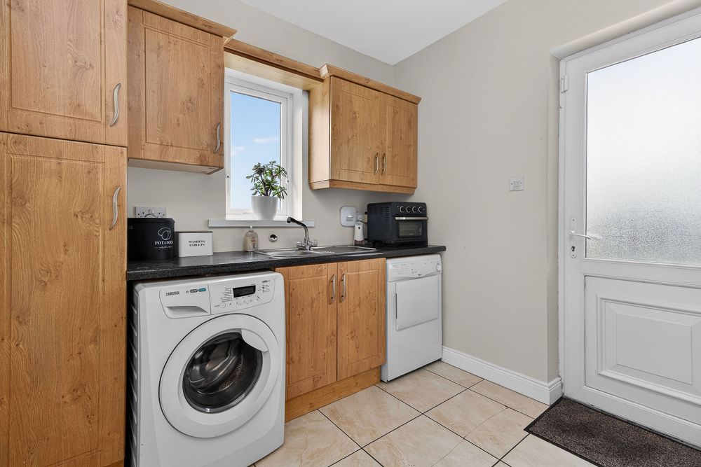 Finished with tiled flooring, fully fitted units complete with wash hand basin and plumbed for washing machine and tumble dryer, extensive fitted units and doors off to the rear.