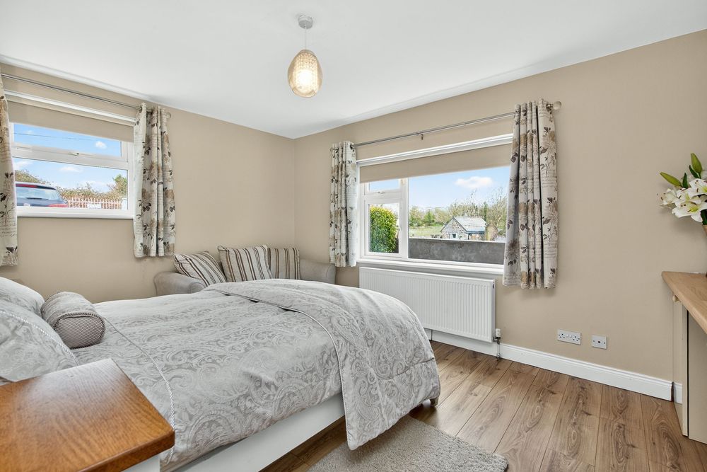 This room is finished with laminate wood flooring and excellent built-in wardrobes and this room is west facing with a large window overlooking the well finished front garden area.