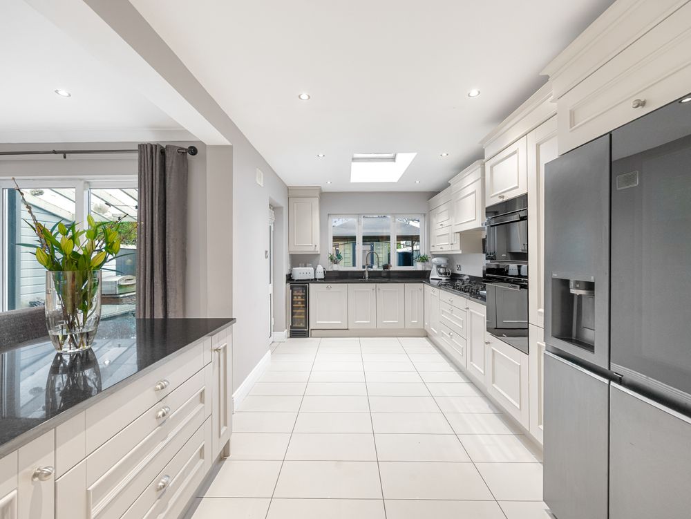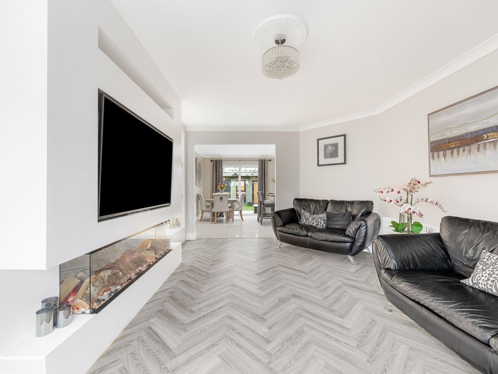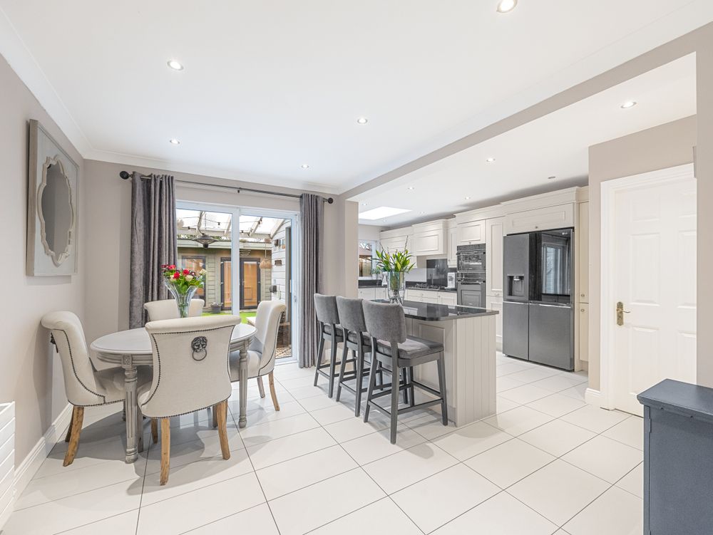 Moving upstairs the quality continues with four bedrooms all complemented by fitted wardrobes. The main bedroom boasts an ensuite shower room which would not be out of place in a boutique hotel with its contemporary tiling and white sanitary suite! Rounding off the first-floor accommodation is the spacious family bathroom, again following the hotel theme with backlit mirrors, sleek vanity storage and high-spec bathroom fittings.