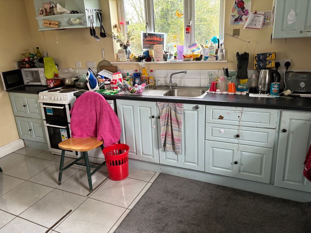 Located to the rear, this bright and spacious room features tiled flooring, fitted floor and wall units, ample worktop space, and a stainless steel sink. The room benefits from multiple windows providing excellent natural light.
