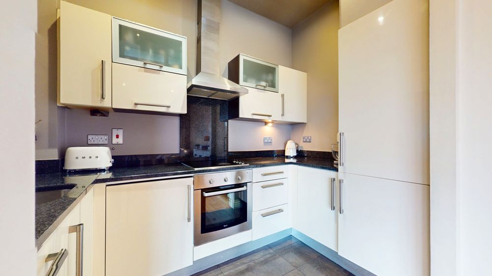 The apartment offers three well-proportioned bedrooms, with the master suite benefitting from its own private en suite — a welcome touch of luxury. A further family bathroom serves the remaining bedrooms with ease. The kitchen is well-appointed and functional, completing a layout that has been thoughtfully designed for comfortable day-to-day living.