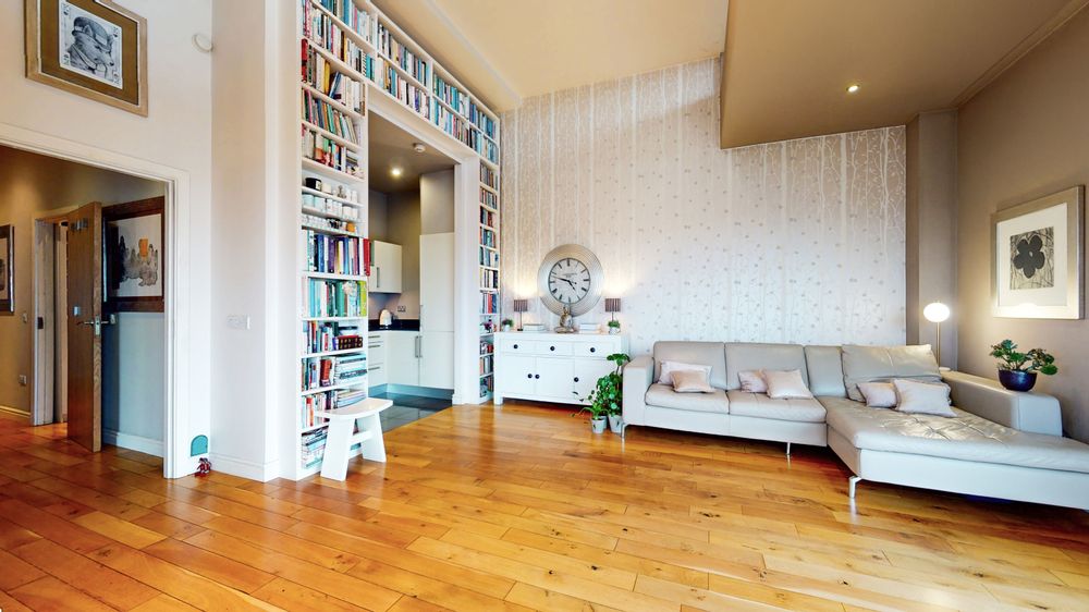 Natural light pours in throughout the day, giving the apartment a warmth and vibrancy that simply cannot be overstated. The generous living room is the heart of the home — a beautifully proportioned space featuring rich wooden floors, characterful bookshelves, and more than enough room to entertain or simply unwind in comfort. Step out from here onto the large, extensive balcony and the real showstopper reveals itself: panoramic views across Dublin that are nothing short of extraordinary. To the north, the rugged outline of Howth and the sweeping expanse of North Dublin stretch into the distance. To the south-east, the majestic Wicklow Mountains provide a dramatic natural backdrop, while to the west the iconic greenery of the Phoenix Park and the Irish Museum of Modern Art sit in full, glorious view. Closer to home, the historic Guinness Storehouse and the sprawling St James's Hospital campus anchor the immediate cityscape below — a reminder that you are positioned right at the living, breathing heart of Dublin. It is the kind of outlook that changes with every hour of the day and never grows old.