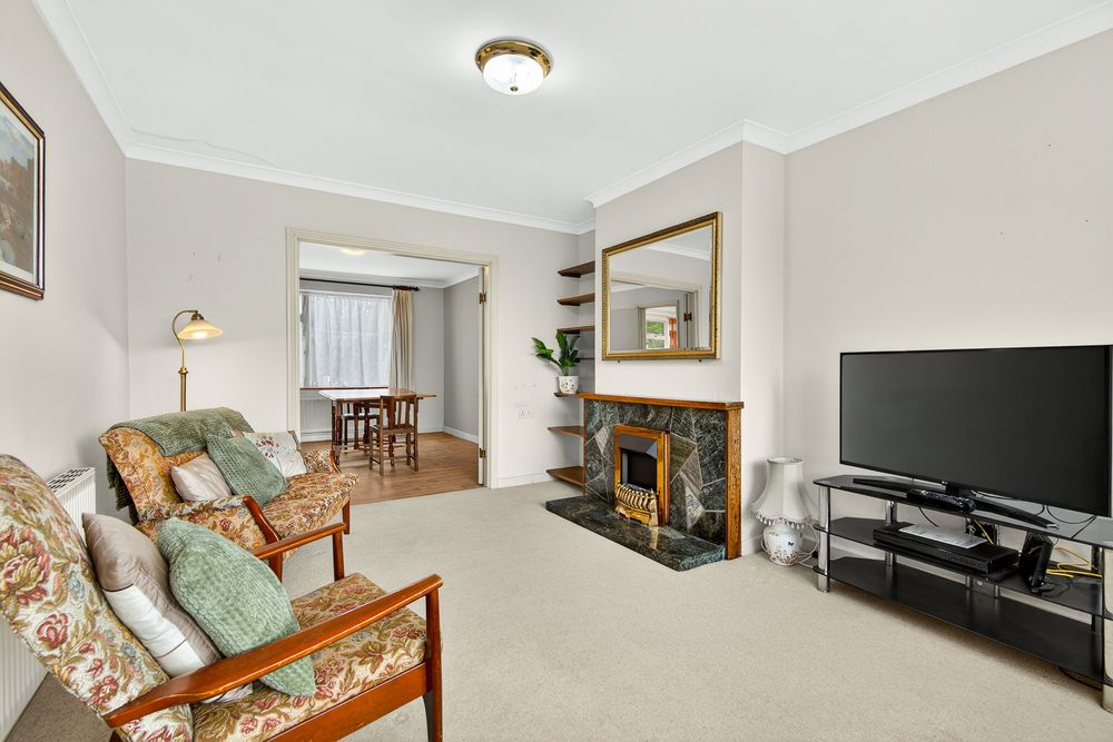 The ground floor accommodation is both bright and welcoming. A stylish living room to the front of the property features an electric stove insert, creating a cosy focal point ideal for relaxing evenings. To the rear, a separate dining room provides an excellent space for entertaining, adjoining the well proportioned kitchen. A guest WC completes the ground floor, along with internal access to the integrated garage.