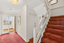 The stairs are finished with a carpet flooring. The landing is also finished with carpet flooring.