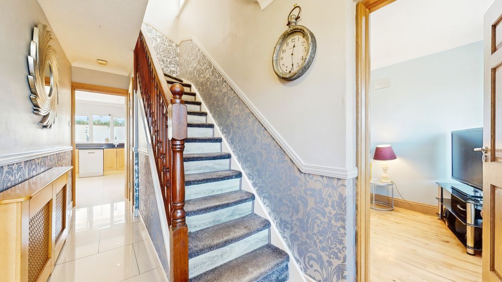 HWP The Property Specialists take great pleasure presenting 3 Westbury Park in excellent condition to the market. This is a spacious and most attractive semi detached four bedroom family home, cira 1492 sq ft, with a converted garage currently used as a second reception room, set in the lovely location of Lucan. This converted room could be used as an office, bedroom or playroom with many other options. This charming home has been maintained to an exceptional high standard by the current owners with a warm feel throughout. Internally a tiled spacious hallway leads to a bright and spacious living room with solid wood flooring, a wood burning stove with back boiler leading on to a beautiful open plan kitchen to the rear with granite worktops, which opens up to a fabulous low maintenance garden with a gazebo and outdoor dining area. A separate utility room with a lot of storage plus an added benefit of another large sitting room with solid wood flooring which was converted from the original garage. There is a guest wc on this floor. There are four large bedrooms, with a master ensuite plus a main family bathroom. There is also attic space with lighting which can be used for storage. The property has a good energy rating of C1. Parking in the spacious cobble lock driveway for two cars, plus plenty of parking on street, facing a beautiful open green area. The property is not overlooked at front or the rear.