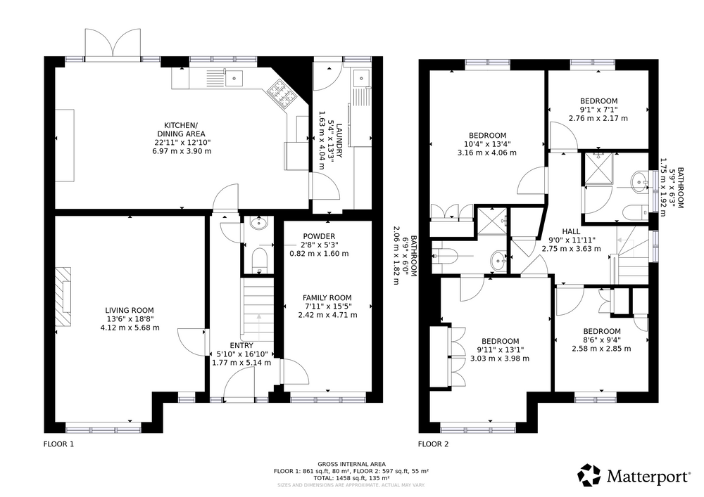 • Two bathrooms with electric showers