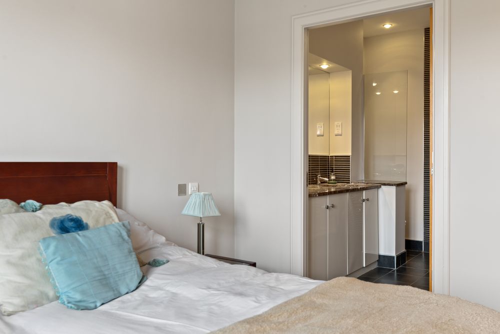 Both bedrooms are good sized doubles, complete with built-in wardrobes. The master bedroom enjoys a high quality ensuite, beautifully finished with full tiling, twin sinks, a full-sized bath, and a separate walk-in shower. A modern main shower room, additional cloakroom, and excellent storage complete the interior.