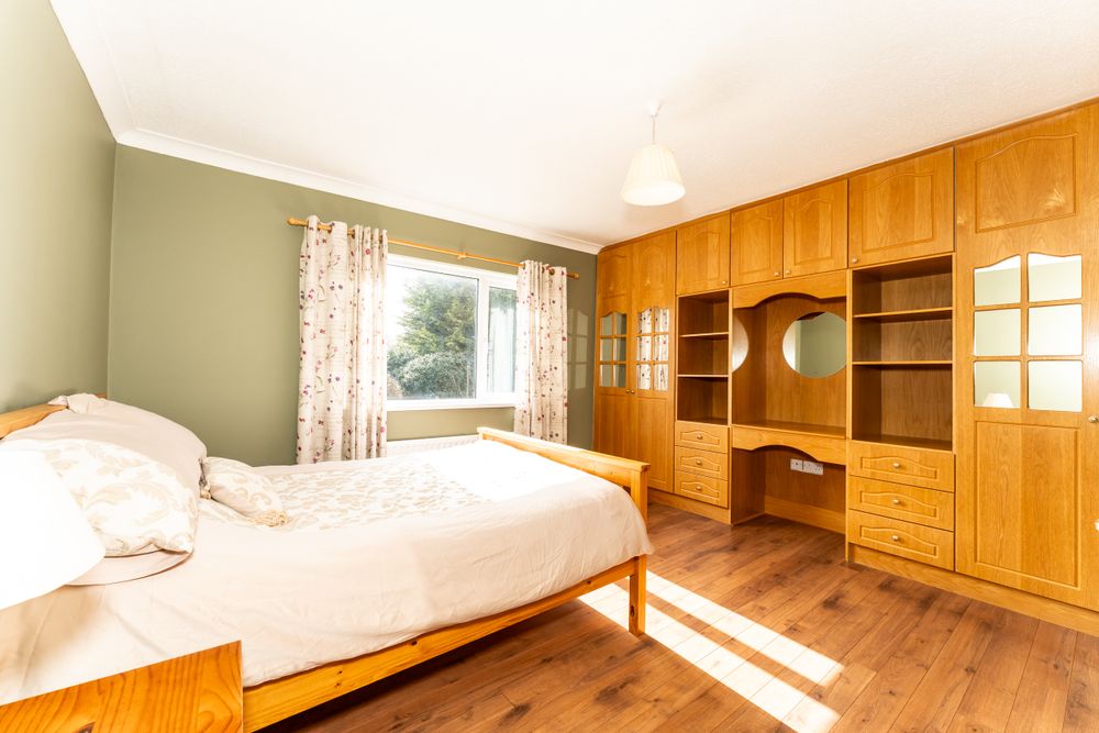 High quality laminate flooring, Built in wardrobes, coving