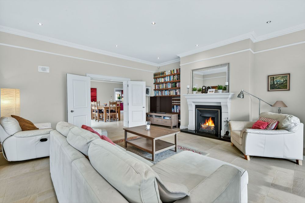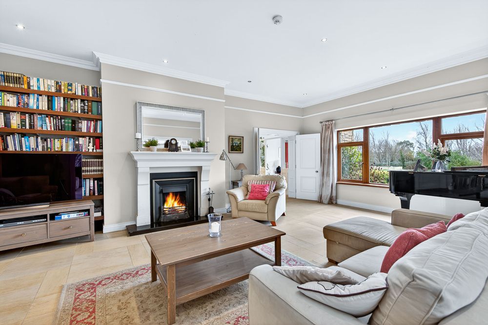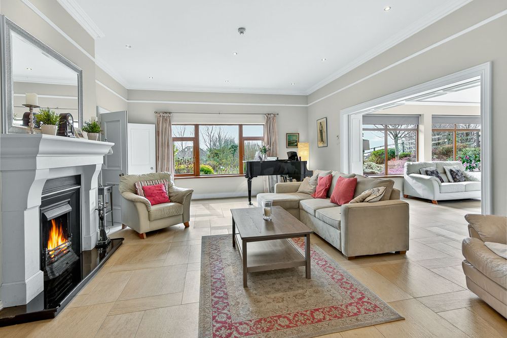 Generous 3m ceiling height, open fireplace with feature surround, south-facing aspect, views towards Sligo bay, double doors to kitchen/dining room and pocket door to sun lounge.