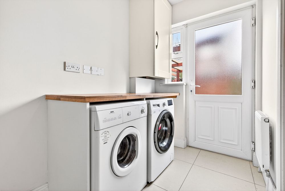 Tiled floor, Work top area, Plumbed for washer/Dryer, Access to rear garden.