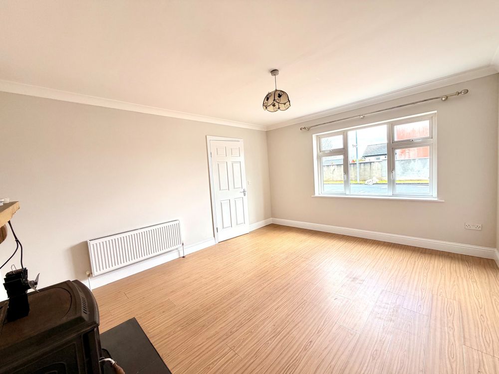 Upon entering, you are welcomed by a bright hallway leading to a spacious living room with timber flooring and a solid?fuel stove. The kitchen is fully fitted, with tiled flooring and an open-plan family/dining area that benefits from sliding door access to a raised rear decking area. A utility room—plumbed for a washing machine and dryer—and a guest WC complete the ground floor.