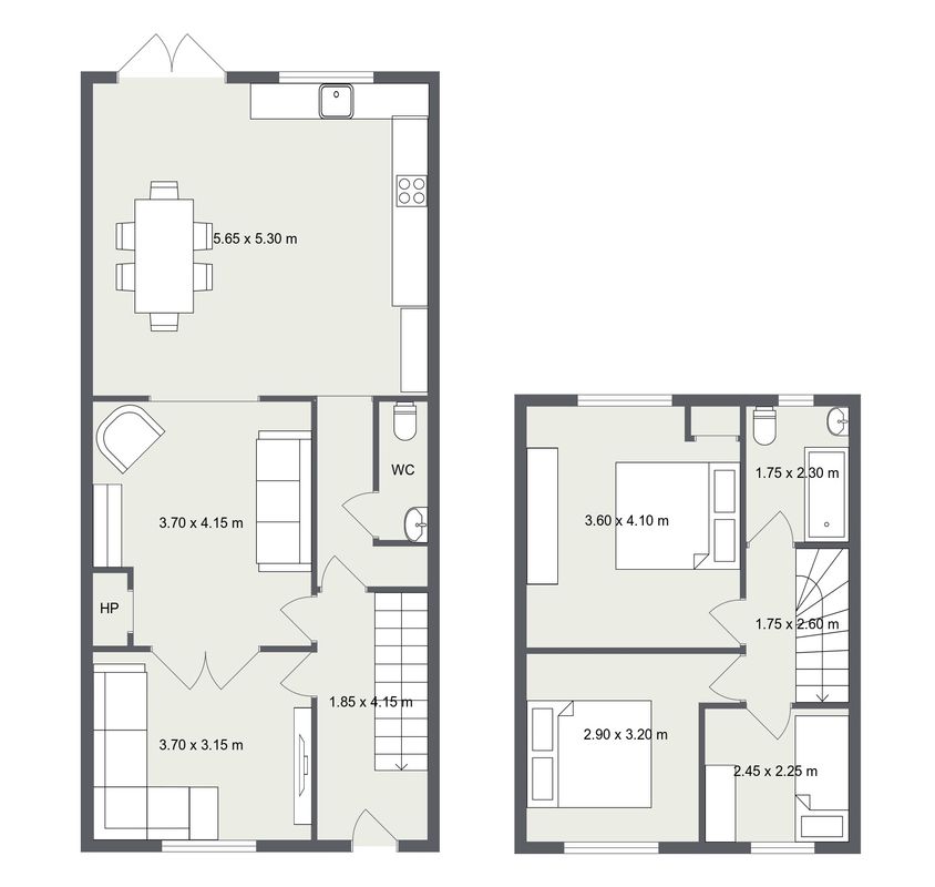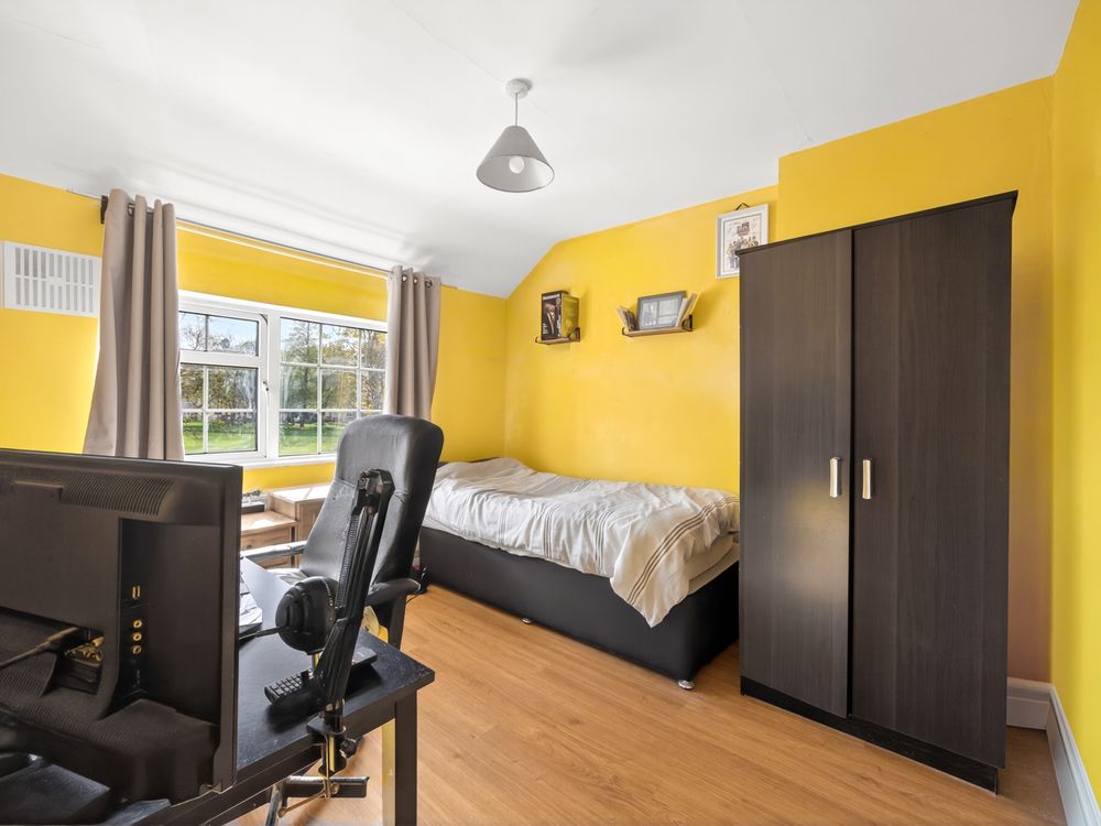 To the front is a smaller garden and driveway providing off-street parking and is overlooked