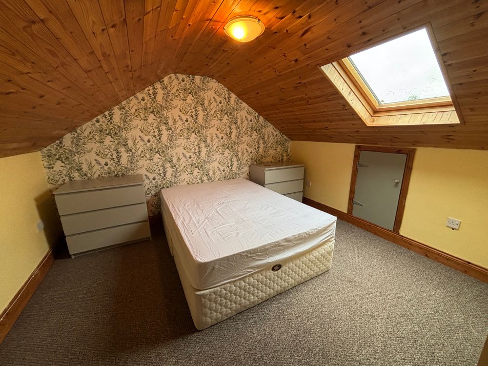 A further well-sized attic room on the first floor, also currently utilised as a bedroom. This room benefits from a carpeted floor, timber ceiling, and a Velux window to the rear. A central attic area provides additional storage space, along with a separate storage room (1.3m x 1.0m).