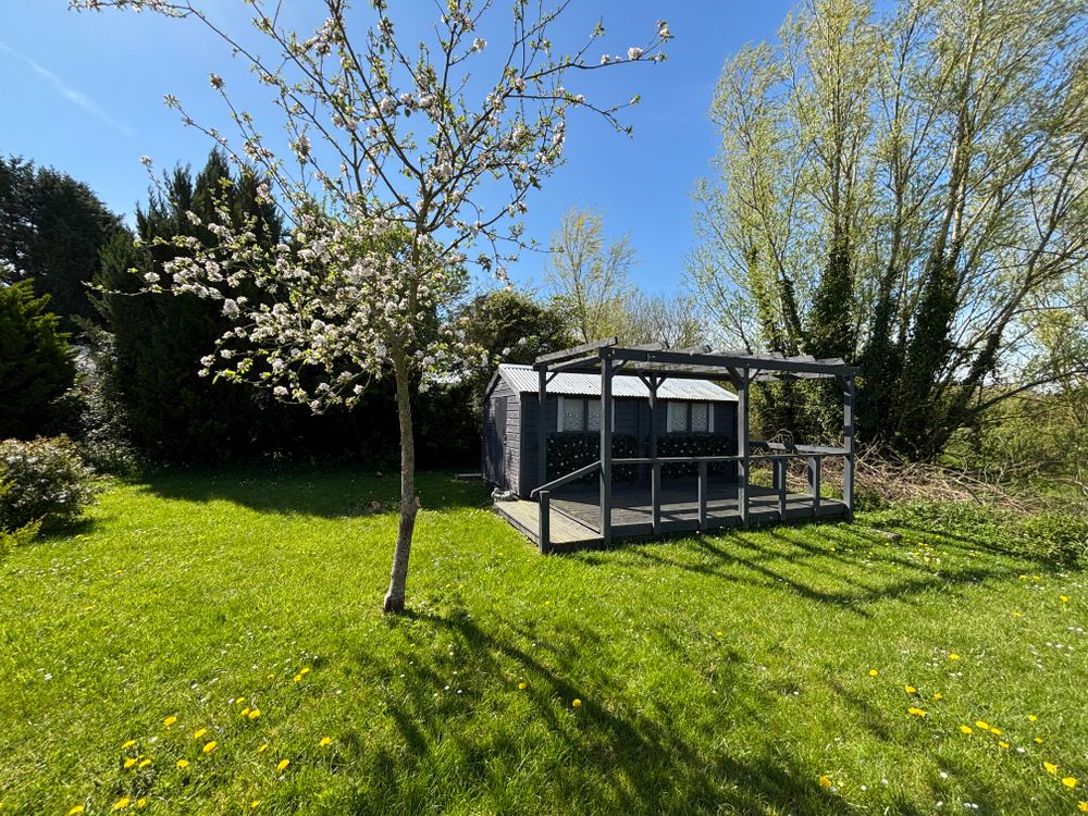 The property benefits from ample parking space to the front and side, accommodating multiple vehicles with ease. To the front of the house, there is a generous lawn complemented by a high-quality timber shed.