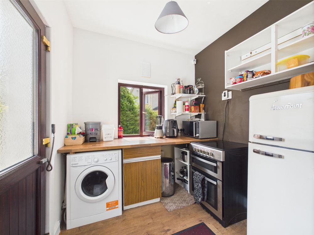 Off the kitchen is a large utility room. This space is plumbed and can be used as a full working kitchen, laundry or storage room.