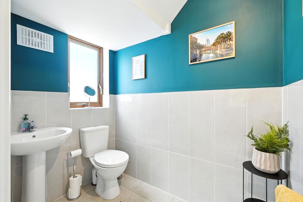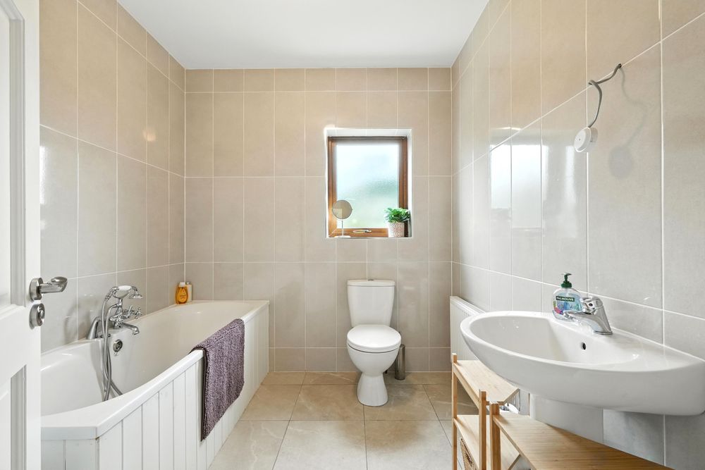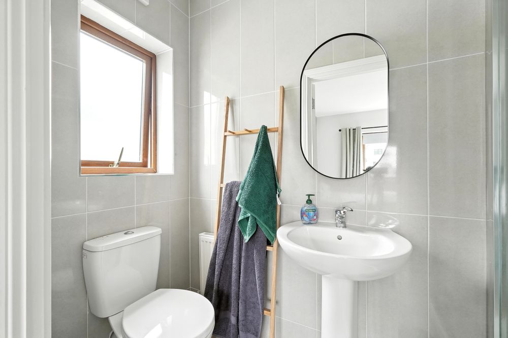 Fully tiled. WC, WHB and generous shower area complete with electric shower fitted.