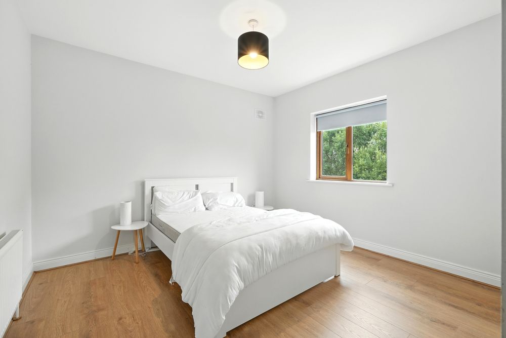 This bedroom features timber flooring and windows on both gable walls, allowing for an abundance of natural light. It enjoys a high level of privacy, overlooking a green area to the side and the rear garden. The room benefits from a south and west-facing aspect.
