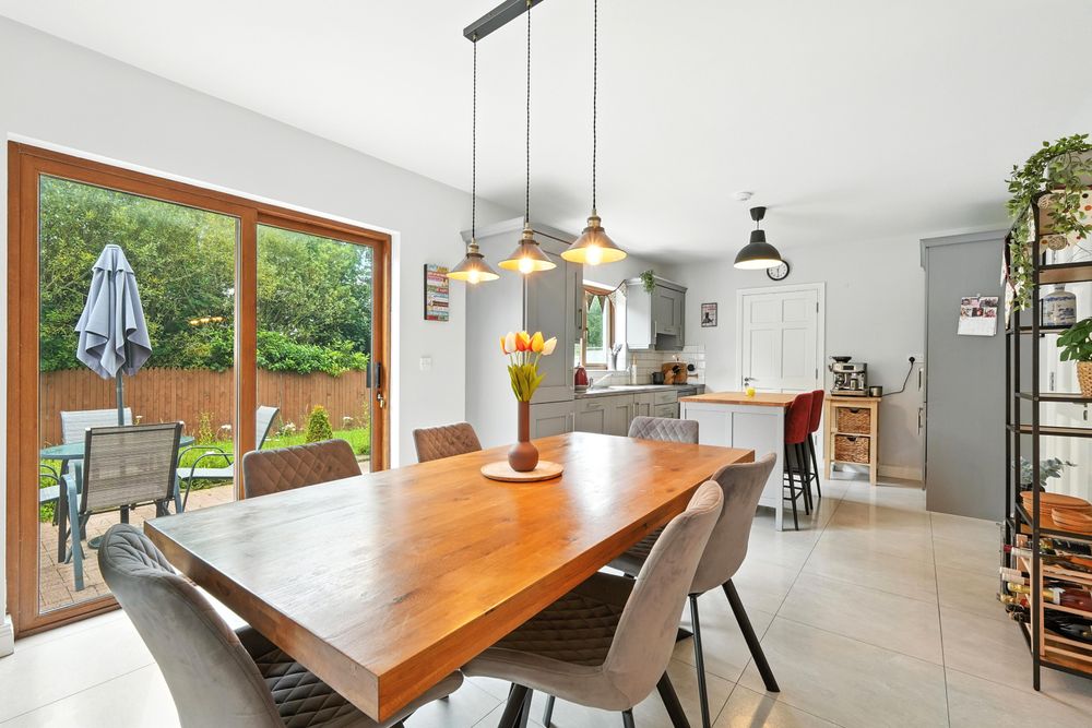 Finished with porcelain tiled flooring, fully fitted kitchen with extensive built in units. There is a fitted oven, hob, dishwasher and also a fridge freezer. This room has a wonderful south facing aspect and the dining area has glazed patio doors that open out onto a brick paved patio area overlooking the private rear garden.