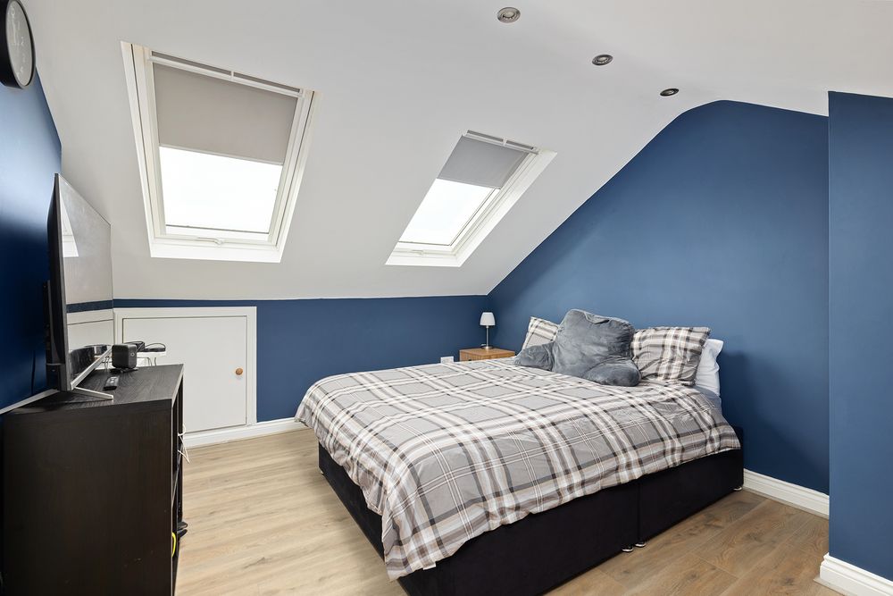 Upstairs there are three bedrooms - a large master, one double and one single - along with a recently renovated family bathroom offering a contemporary, luxury finish. The attic conversion (2019) provides additional usable space, ideal as a home office, playroom or relaxation area, and includes a walk-in closet and eaves storage.
