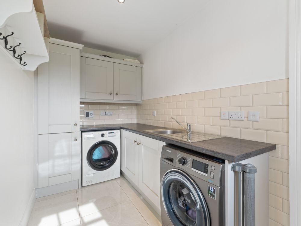 Finished with fully tiled flooring, fully fitted units, plumbed for washer/dryer and it also has a wash hand basin. Door out to the rear yard.