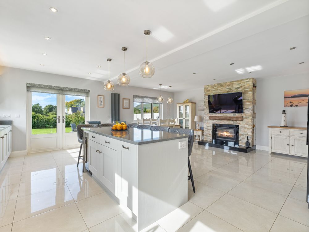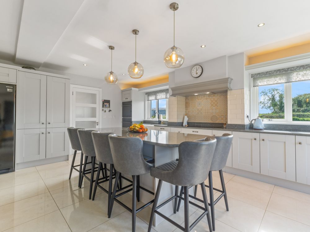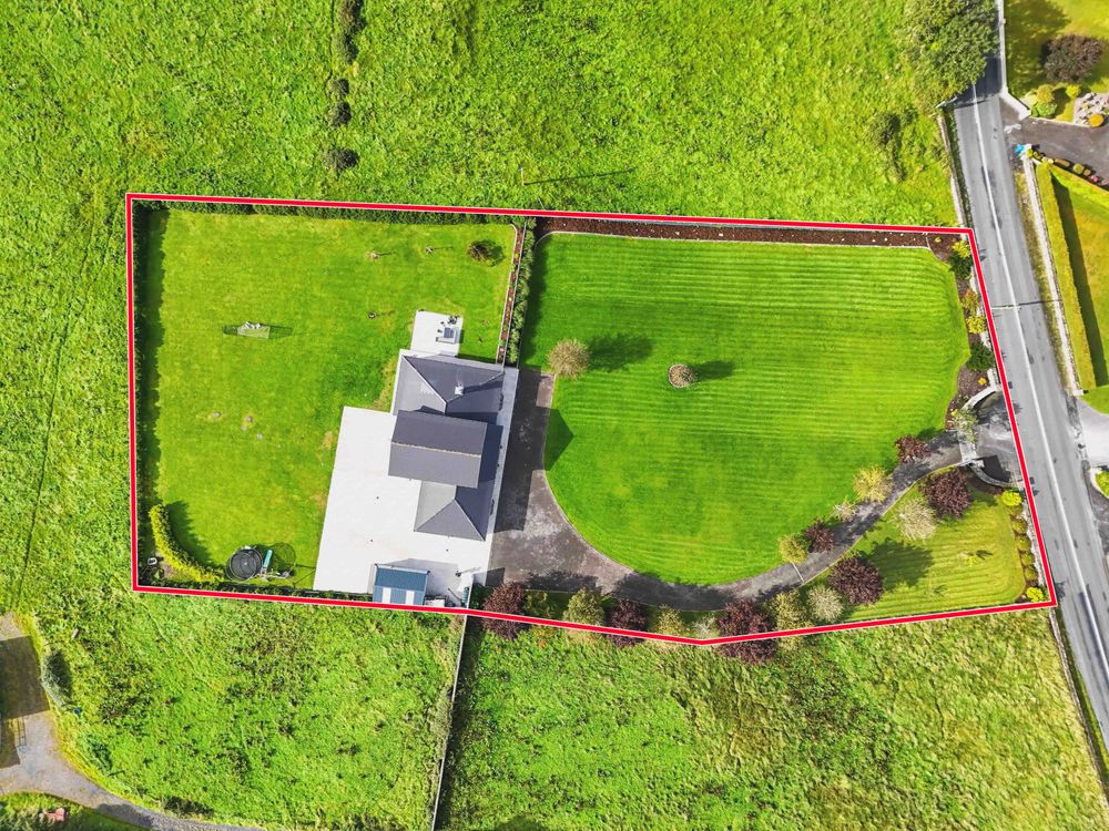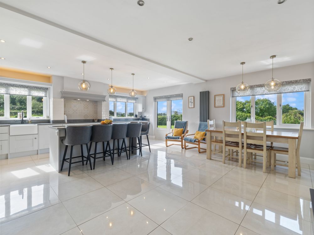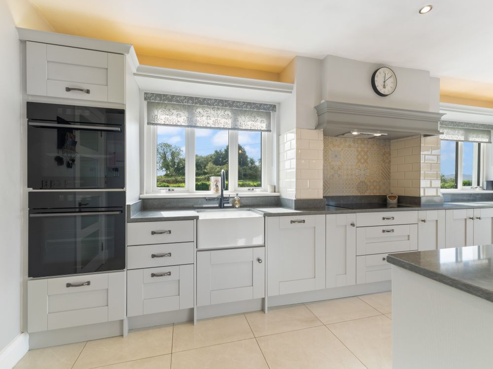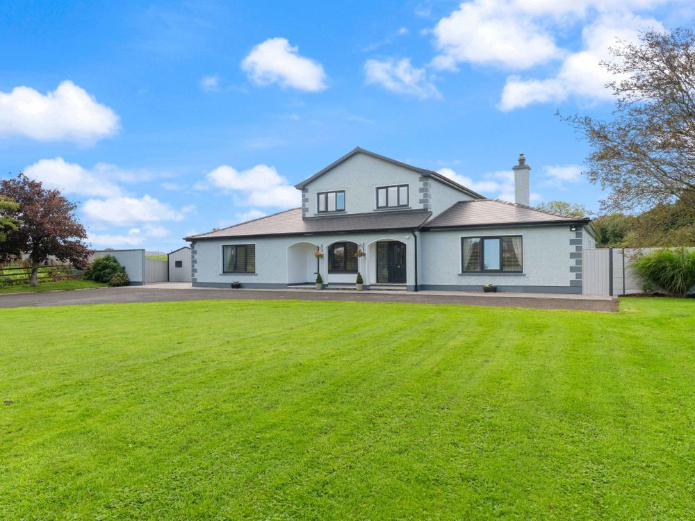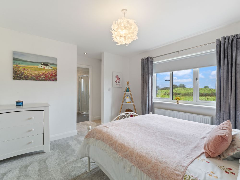 A beautifully finished five-bedroom home near Ransboro, this property offers generous living space, quality finishes, and a private setting. The ground floor features two bright reception rooms, a stunning open-plan kitchen/dining area with island and French doors to the west-facing patio, a utility, guest WC, and two bedrooms including a luxurious main suite with dressing room and en suite. Upstairs are three further bedrooms, two en suites, and a family bathroom. Set on landscaped gardens with ample parking, a large steel tech shed, triple-glazed windows, and a newly installed condenser oil burner (2025), this is a spacious, turn-key home designed for modern family living.