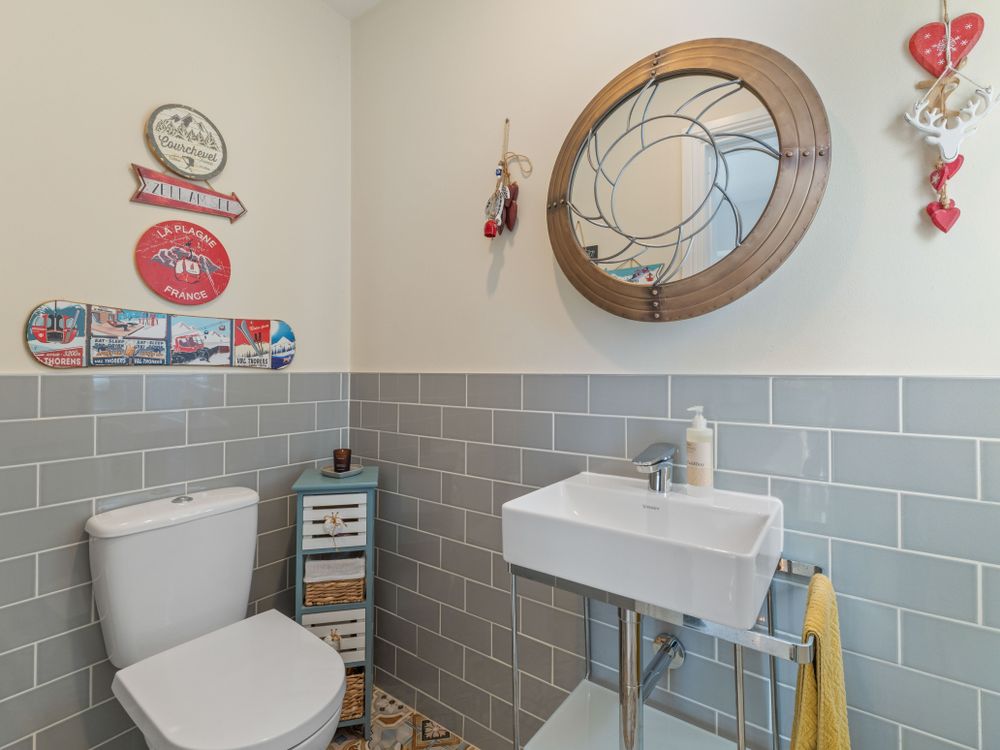 Finished with tiled flooring, part tiled walls, includes WC and WHB.