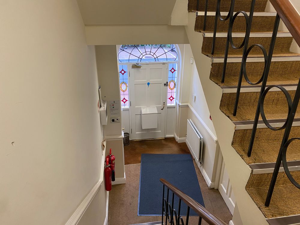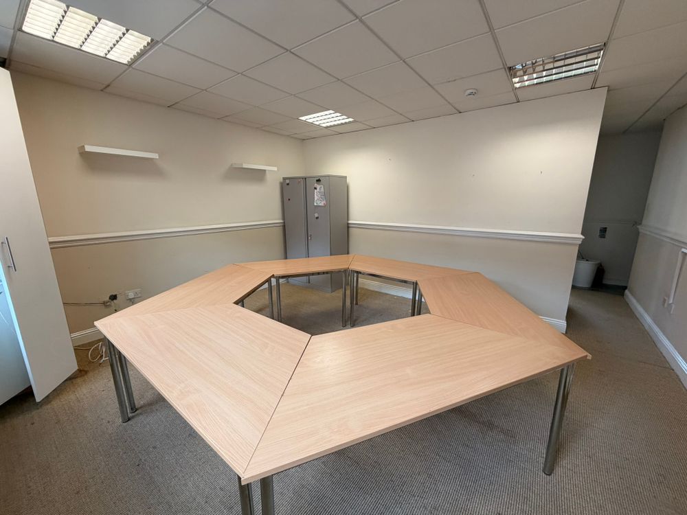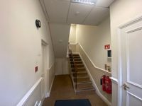 This three-storey, end-of-terrace office benefits from own-door access and a high-quality fit-out throughout, including modern lighting, full carpeting, aluminium double-glazed windows, and fitted partitions.