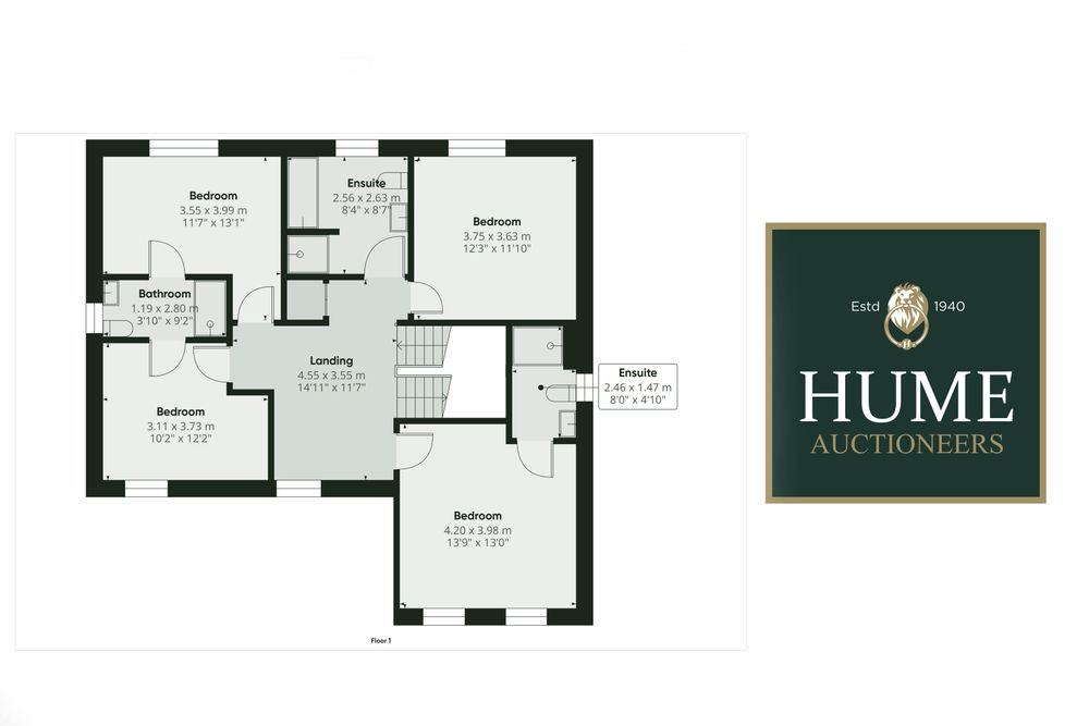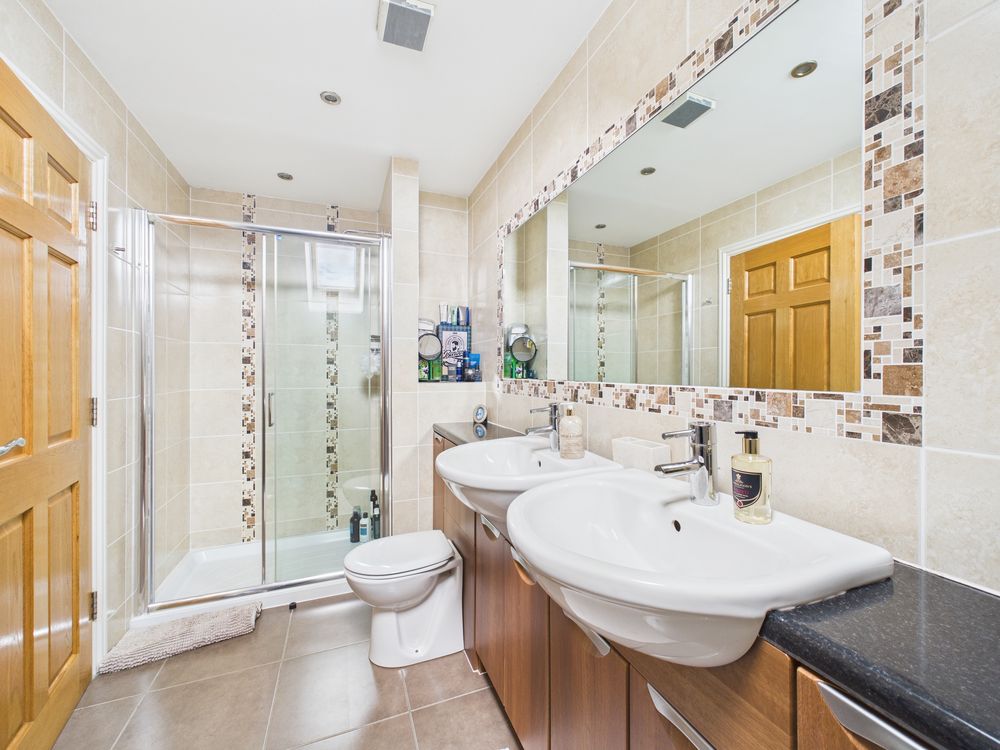 There are four well-appointed bedrooms. The largest bedroom on this floor is most impressive in size, complete with fitted wardrobes and its own ensuite finished to an excellent standard. Two further double bedrooms also benefit from ensuite bathrooms, all tastefully tiled and fitted with modern sanitary ware. A fourth bedroom is equally well-presented, offering flexibility as a guest room or study.