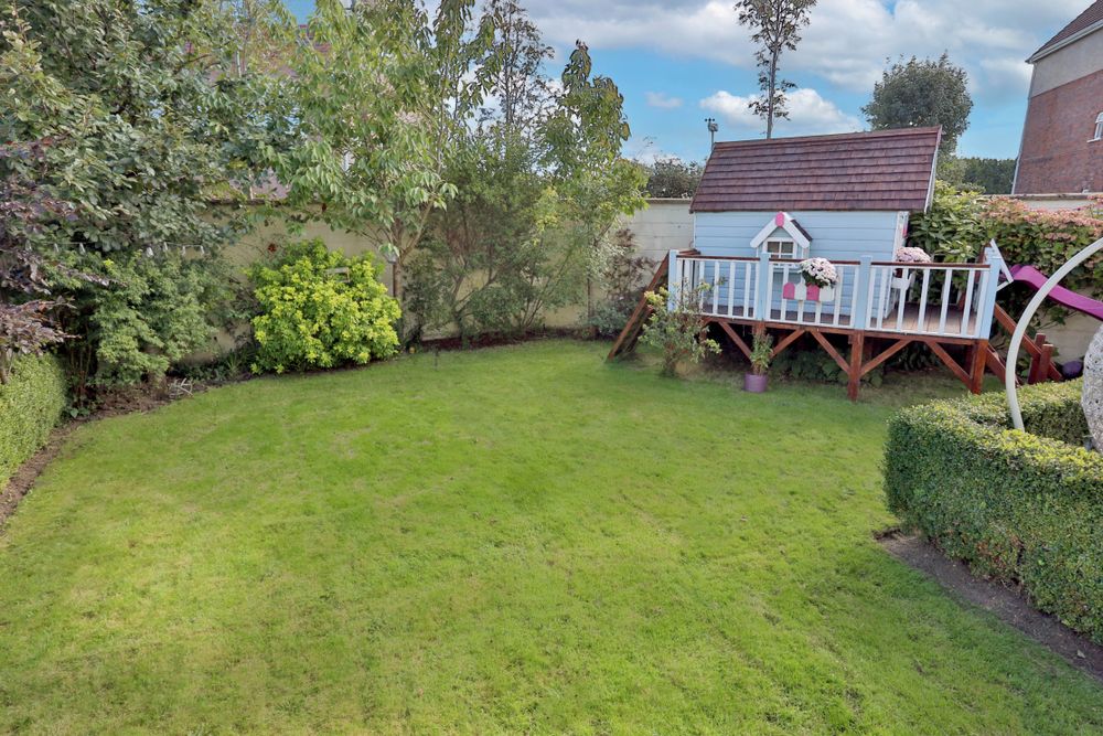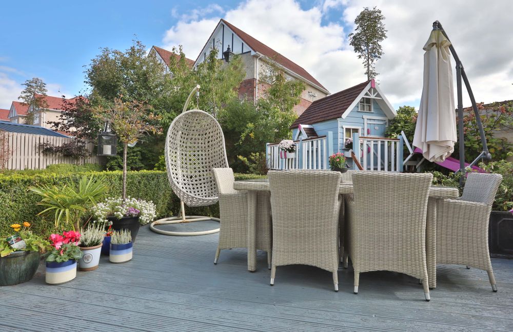 Outside the Gardens are a tranquil haven. With mature shrubbery, attractive lawns, abundant fruit trees, this is a beautifully natural space. Fully walled in and featuring a picturebook Wendy House and large patio Al Fresco dining area, this is a magnificent family space.