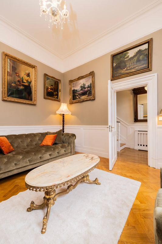 The attention to detail in this home is evident from the moment you step inside, as you will see from the photos. The entrance hall features Canadian red oak flooring, oak staircases, panelled walls with a radiator cover and an antique chandelier, which sets the tone for the rest of the house.