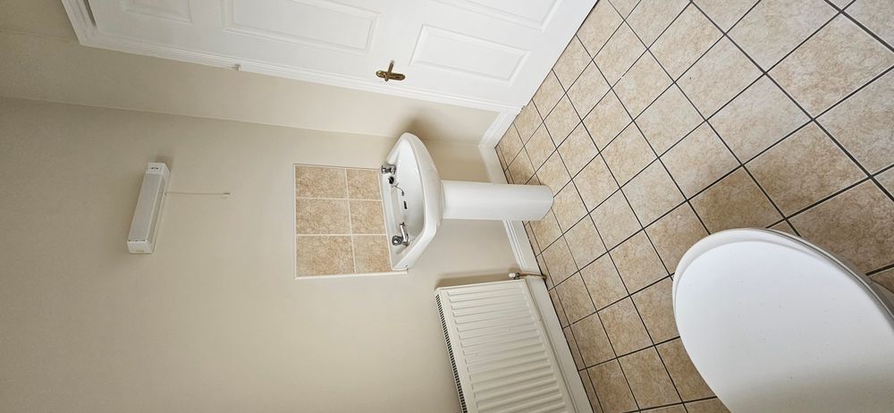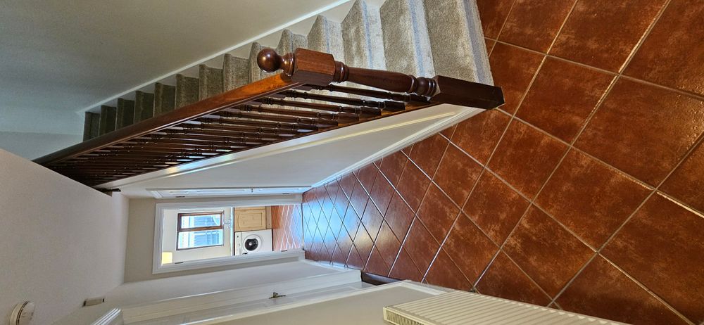 Tiled floor, radiator, newly carpeted stairs, power points, phone point, storage cupboard under the stairs with light and power point.