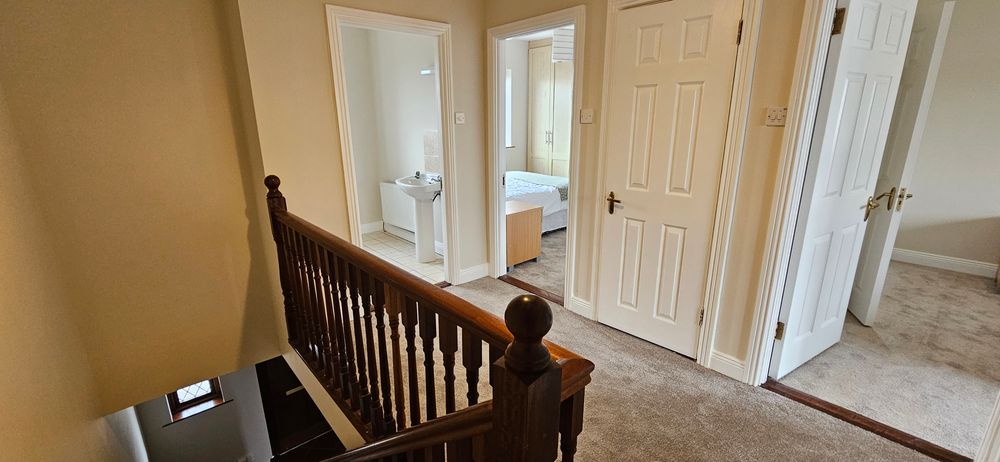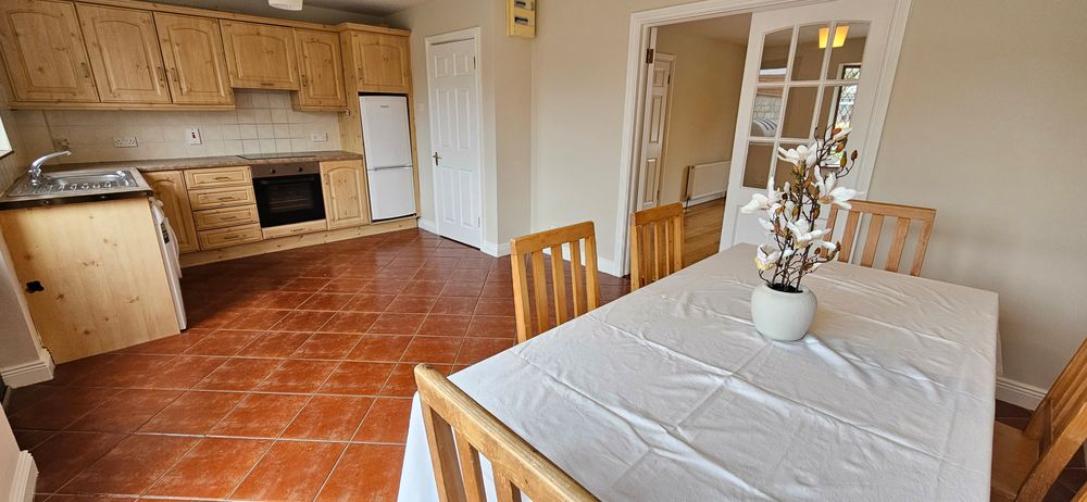 Newly redecorated and well presented 3 bedroom semi detached house in the Oaklands Estate in Carrick on Shannon, just off the Summerhill Road. This is an excellent starter home or investment property in a well established residential area. It has a large sitting room with Oak flooring to the front with bay a window and double doors leading through to a spacious family kitchen and dining area. Patio doors and rear door lead to the large back garden which has also side access for convenience. There is a contemporary fitted kitchen. On the first floor are 3 bedrooms 2 of which have built in ward robes. One is en-suite, and there is a family bathroom. The property has been newly decorated including new carpeting to the stairs, landing and the 3 bedrooms along with painting throughout. There is a large garden to the rear which is lawned and has a garden shed. This property is located in the Summerhill area of Carrick on Shannon and is within walking distance of schools, shops and all other amenities including childcare facilities, Aura Leisure centre etc. Carrick on Shannon also has a Train Station servicing the Dublin/Sligo line together with National Bus service and a local link service. The Shannon waterway and Boardwalk is also a short walk away.