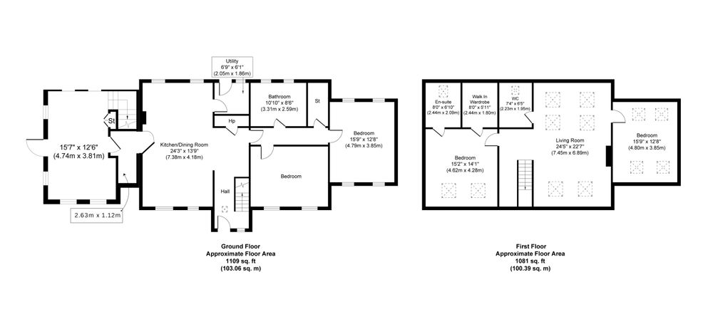 Upstairs, the cosy living area, complete with wood burning stove, is filled with natural light thanks to large Velux windows, offering panoramic views of the surrounding countryside. Two further bedrooms, including a master bedroom with walk-in wardrobe and ensuite and an additional guest bathroom complete the first floor.