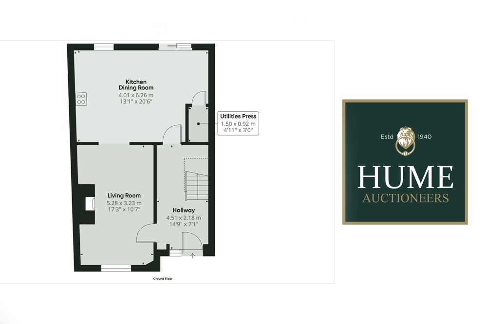 On the ground floor there is a large and welcoming entrance hall. With a feature staircase and high ceilings, the property is immediately impressive.
