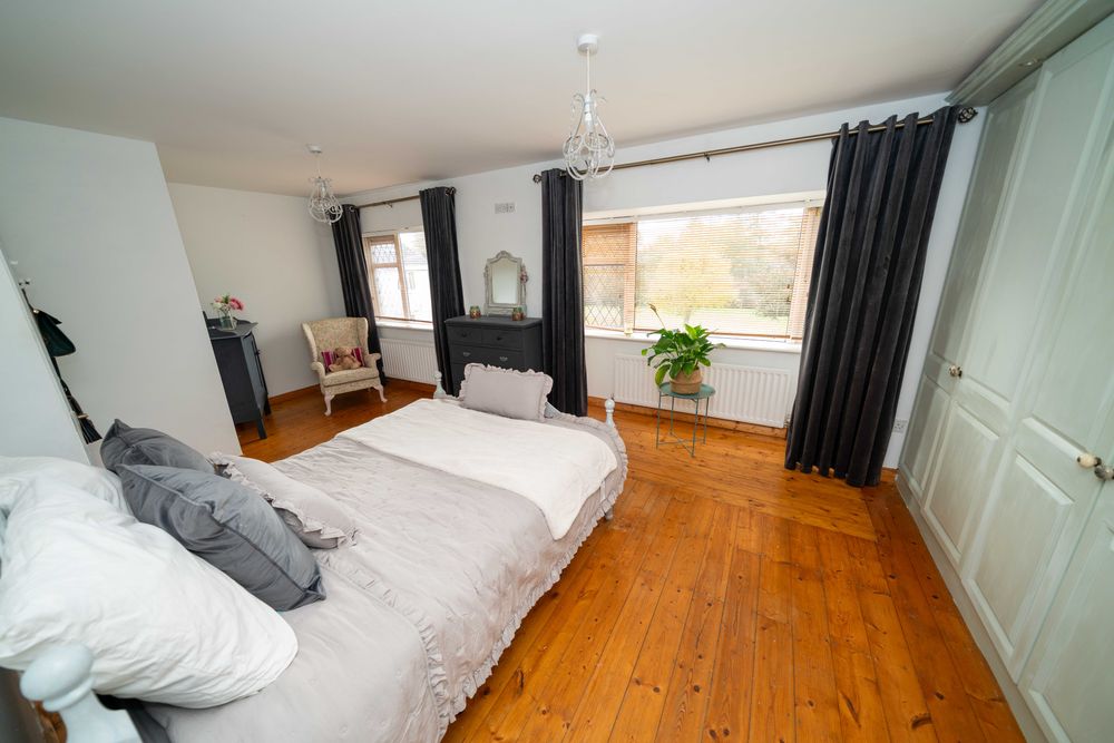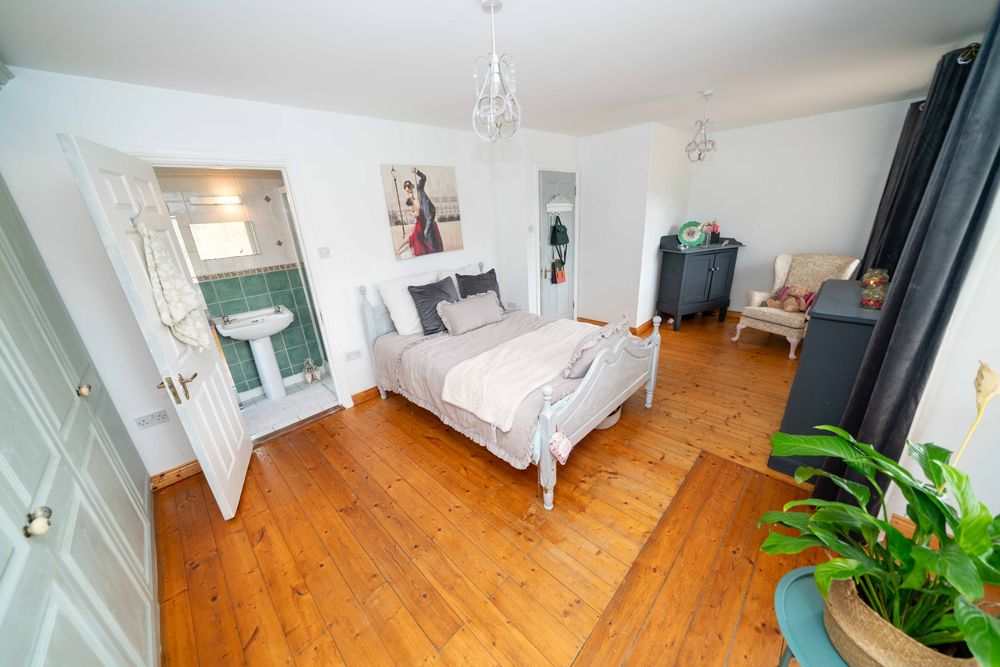 Downstairs Bedroom (14.06ft x 8.54ft) A versatile living space ideal as a bedroom, playroom, home office, or snug, with solid wooden flooring and a bright outlook.