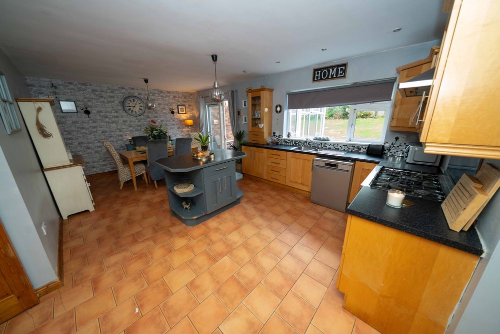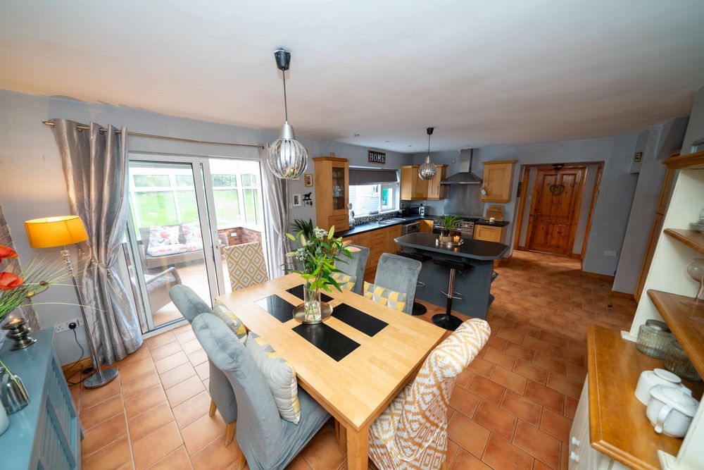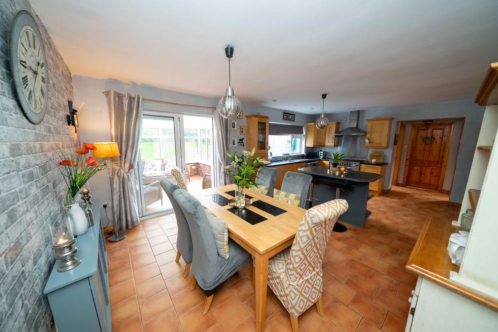Kitchen/Dining Area (26.19ft x 15.99ft) The heart of the home, this spacious kitchen is fitted with modern appliances, tiled flooring, and an abundance of storage. Sliding doors open to the sunroom, flooding the space with natural light, while a door to the utility room adds everyday convenience.