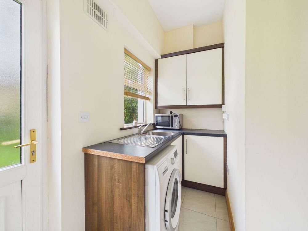 Off the kitchen is a utility room which is complete with fitted cabinets and is fully plumbed throughout. There is also a fully appointed guest WC.