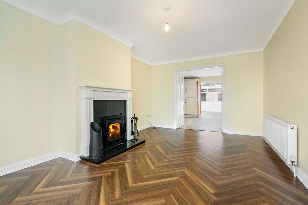 Parquet wood flooring. Feature fireplace. Coving to ceiling. Bay window. Double doors to kitchen/ dining room.