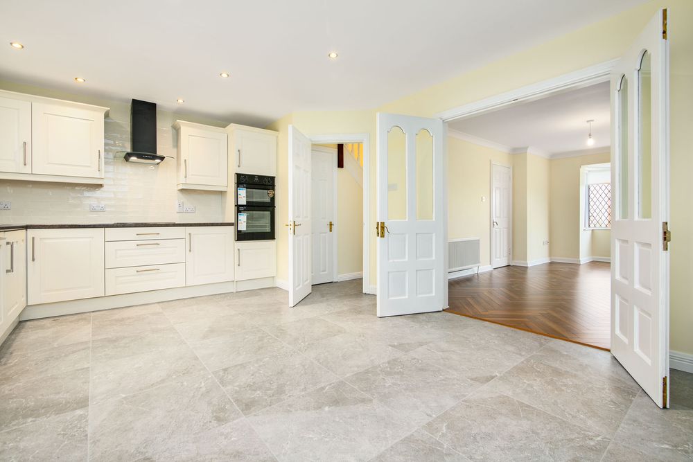 Fully fitted kitchen. Ceramic tiled flooring. Tiled splash back. Glass double doors to conservatory.