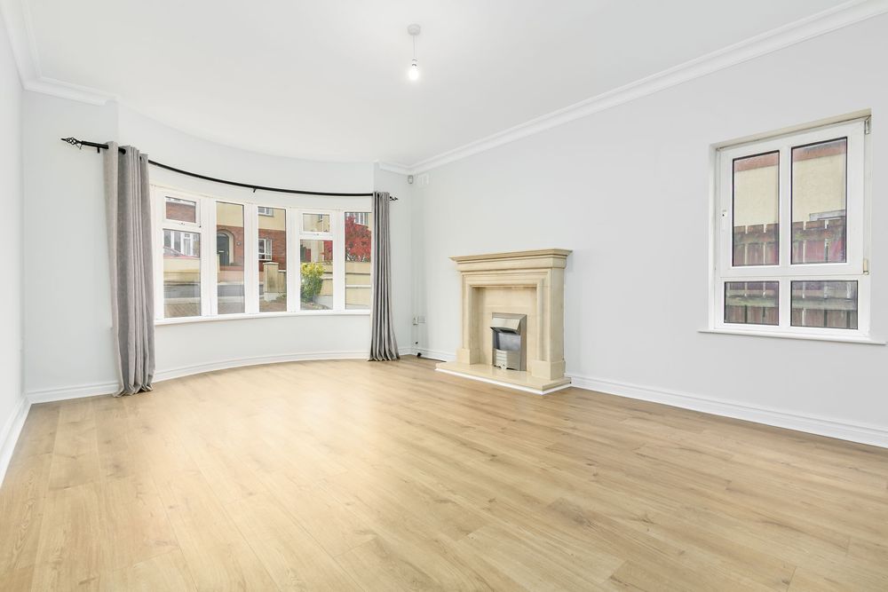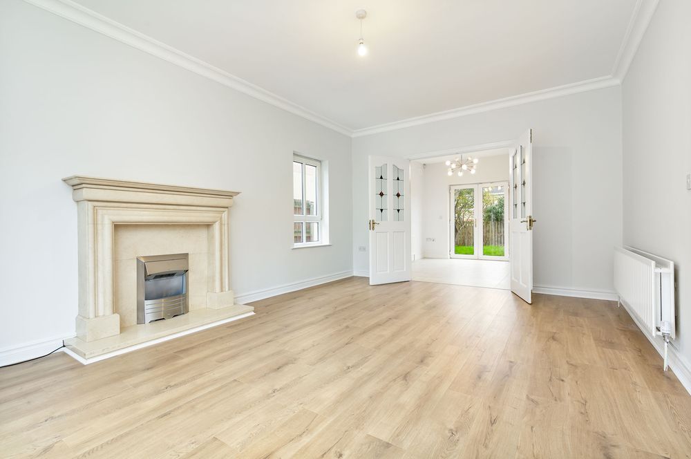 Laminate flooring. Feature marble fireplace. Bay window. Double doors to dining/ kitchen area.