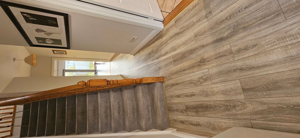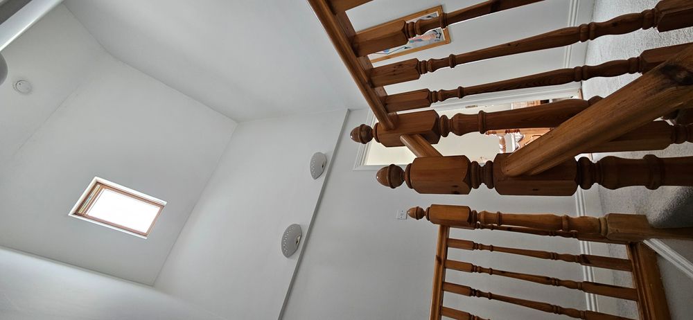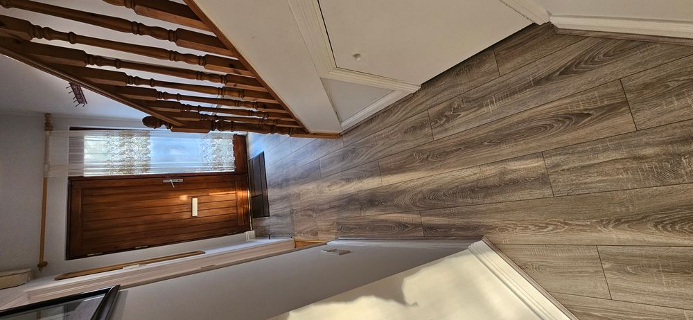 Laminate flooring, radiator, power points, phone point, storage under the stairs.
