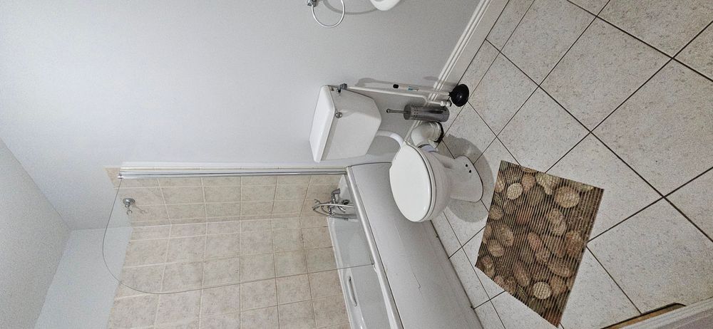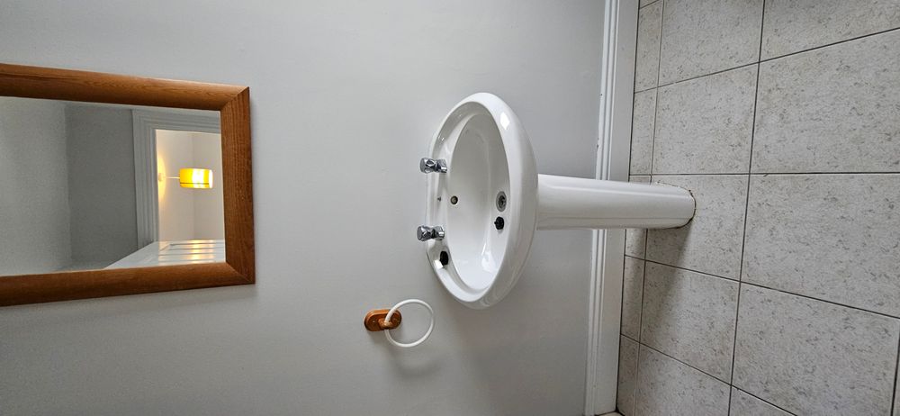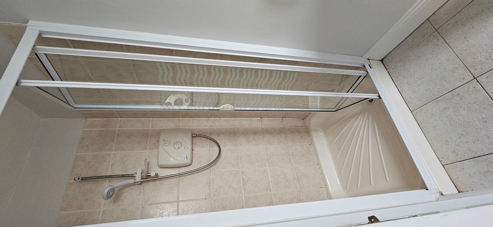Bath with shower mixer, wc, whb, ex tractor fan, fan heater, hot press.