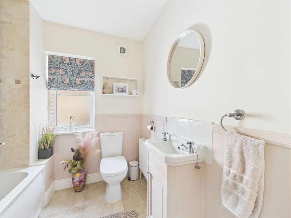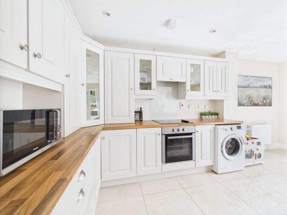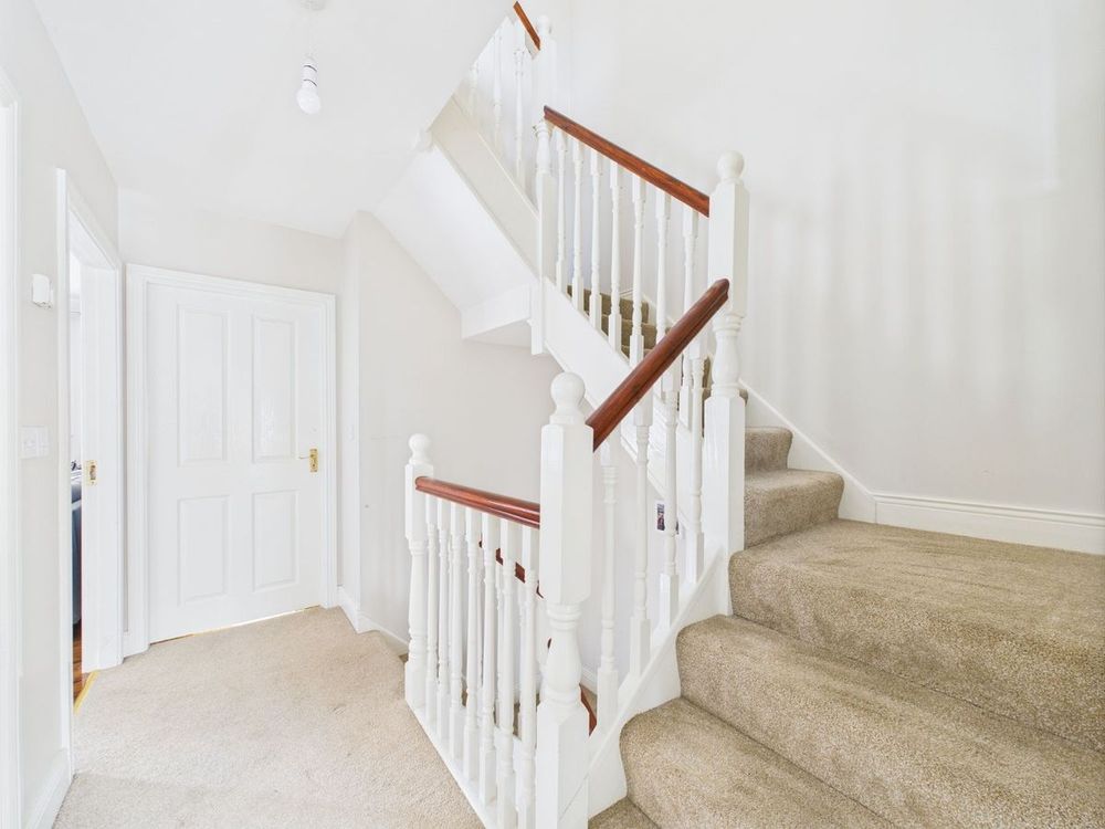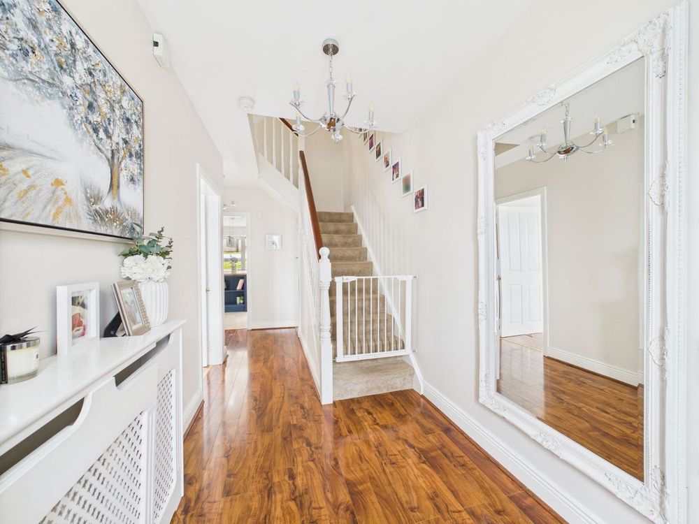 The second floor boasts two further large double bedrooms, one with a fully appointed ensuite bathroom, and a spacious landing area, making it ideal for larger families or those seeking extra flexibility.
