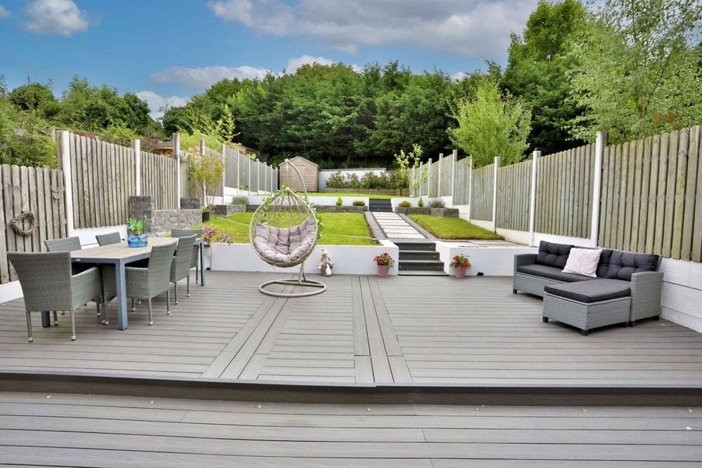 The exceptional garden is a true standout feature of the property—beautifully landscaped, thoughtfully designed, and perfect for both relaxation and entertaining. A stunning raised composite deck creates an elegant outdoor living space, ideal for dining, lounging, and enjoying long summer evenings. The garden unfolds across multiple levels, with crisp white retaining walls, neatly edged lawns, and a charming pathway leading to a private upper terrace and garden shed. Surrounded by mature trees and enclosed by quality fencing, the space offers superb privacy and a peaceful, green backdrop. With its stylish seating areas, immaculate presentation, and cleverly planned layout, this garden provides a luxurious extension of the home and an idyllic setting for modern family life.