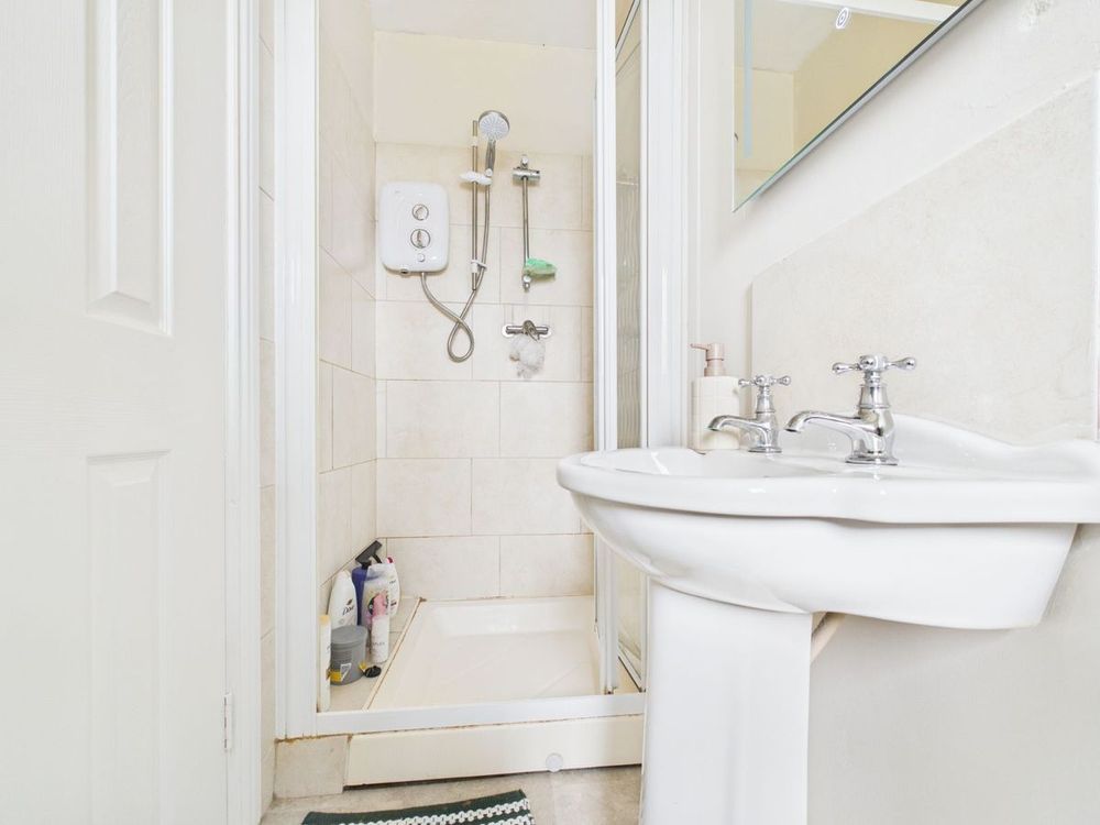 Bathroom 2.85m x 1.65m (9' 4" x 5' 5") Tiled shower area, shower door, w.c., w.h.b., vanity unit, shaver light and socket.