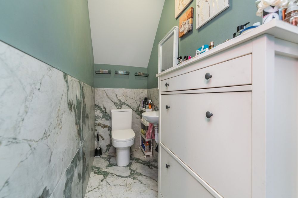 This superb A-Rated 2 bedroom townhouse comes to the market in immaculate condition throughout. It extends to circa 80.3 sq.m. / c. 864 sq.ft. and benefits from PVC double glazed windows, Air to Water heat pump system and floored and plastered attic which is suitable for conversion. To the front of the residence, there are 2 parking spaces with an EV charger, along with bin and bike storage, to the rear is a walled in garden along with a covered verandah. The property also benefits from a low maintenance brick/dashed exterior.