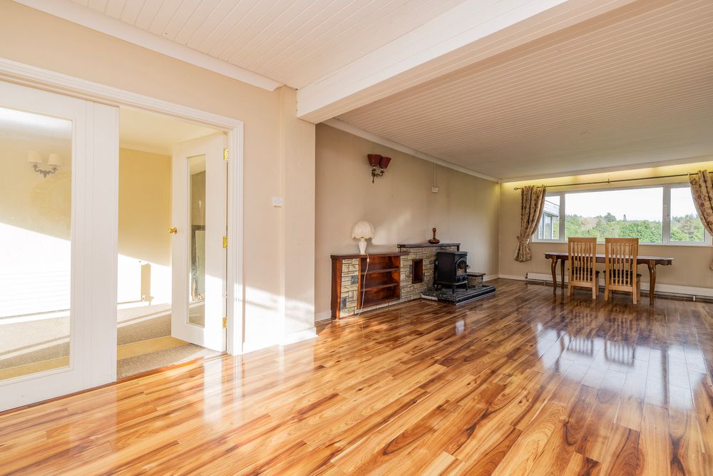 Again this elegant reception room is extensive and boasts dual aspect windows overlooking the spectacular gardens, a feature fireplace with brick surrounding and marble hearth finished with an oak mantle creates a cosy central focus point and is home to a homely stove . Timber flooring at foot is easily maintained and reflects the light perfectly. Perfect for entertaining or every day family living an archway leads to the dining room.