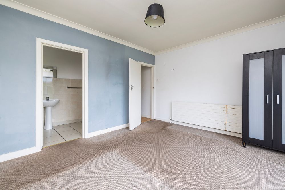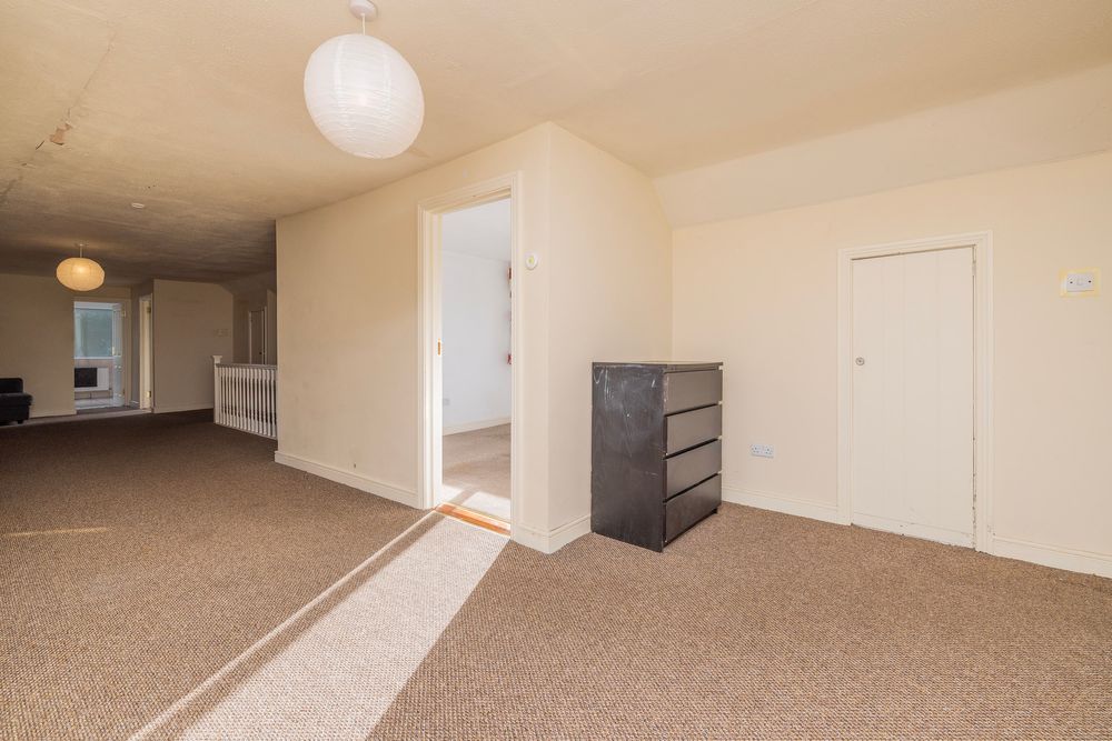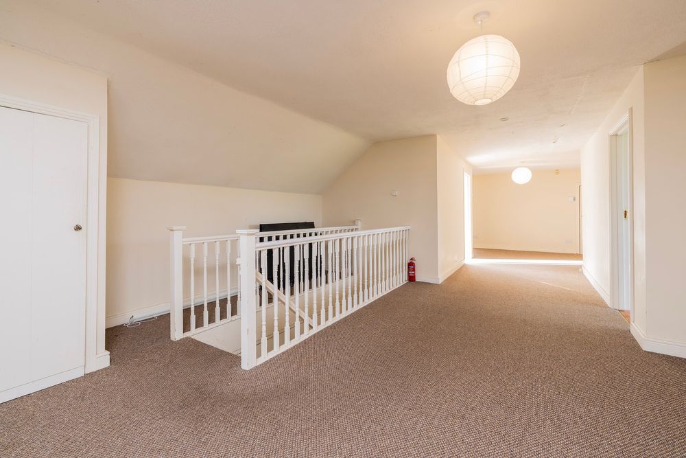 With high quality sanitary ware including wc, wash hand basin with vanity unit below providing ample bathroom storage, P shaped bath with shower facility and curved glazed screen door, extensive tiling in a neutral shade provides a touch of hotel luxury. A walk in storage space provides ample storage for towels.